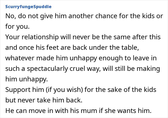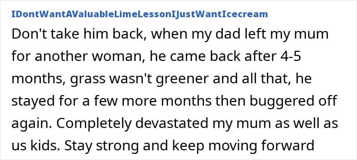 We would love to hear your thoughts on this situation in the comments below, pandas. Do you think this woman is making the right choice by refusing to take her husband back? Feel free to weigh in, and then, you can check out another We article discussing similar themes right here.