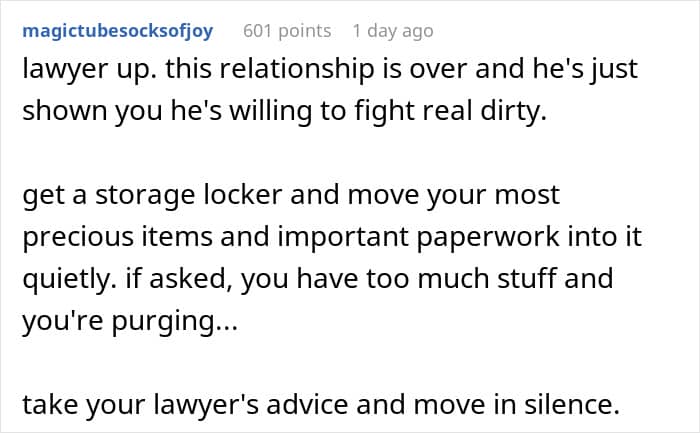 However, it doesn’t seem like the woman’s partner is willing to talk things through, given how dismissive he had been. It may be best for her to rethink the relationship and consider involving a lawyer when necessary.