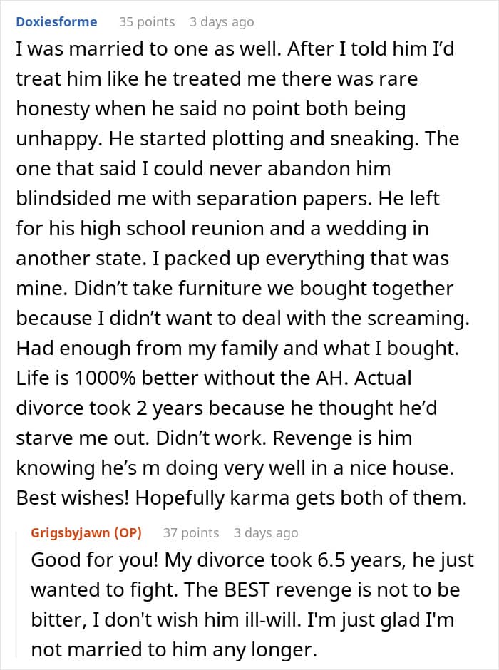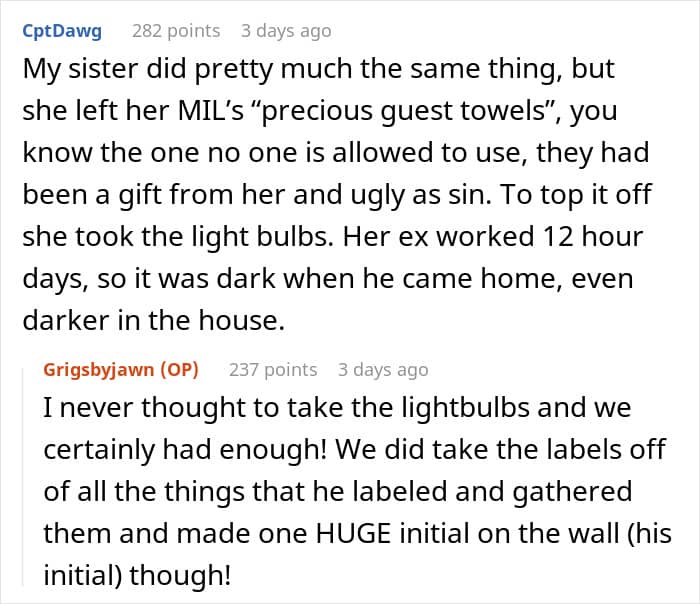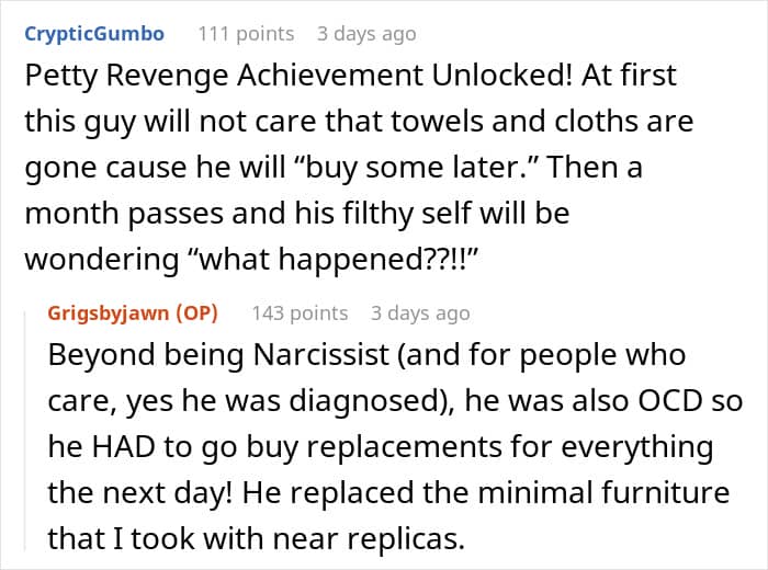 Finally, Grigsbyjawn shared some wise words for anyone in a similar situation. “I would always suggest that people not stay in toxic, unhealthy relationships and to exit in a way that is safest for everyone involved. My ‘revenge’ was certainly petty but definitely not harmful.”