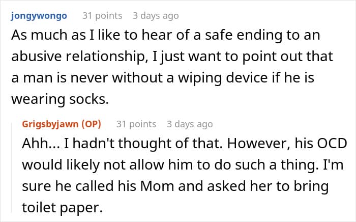 “While the Reddit story is framed humorously, leaving a controlling partner is not simple or risk-free,” the relationship expert pointed out. “It may be satisfying to imagine getting back at someone by taking the mattress or all the toilet paper, but intentionally provoking a volatile person could lead to serious consequences.”