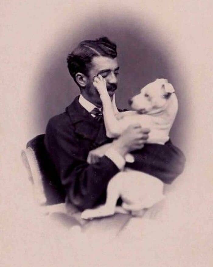 Hot Diggity dog! This man is hot. This photo from the 1910s shows a thoroughly handsome chap seated with what looks to be a model/statue of a dog. The photo was taken in Lugansk, Russian Empire, now Ukraine.