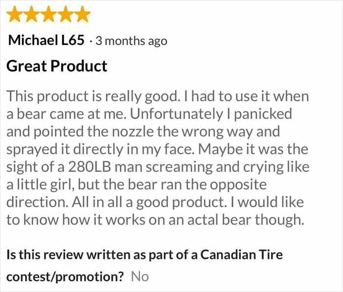 #2 Came Across This Funny Review When Looking For Bear Spray