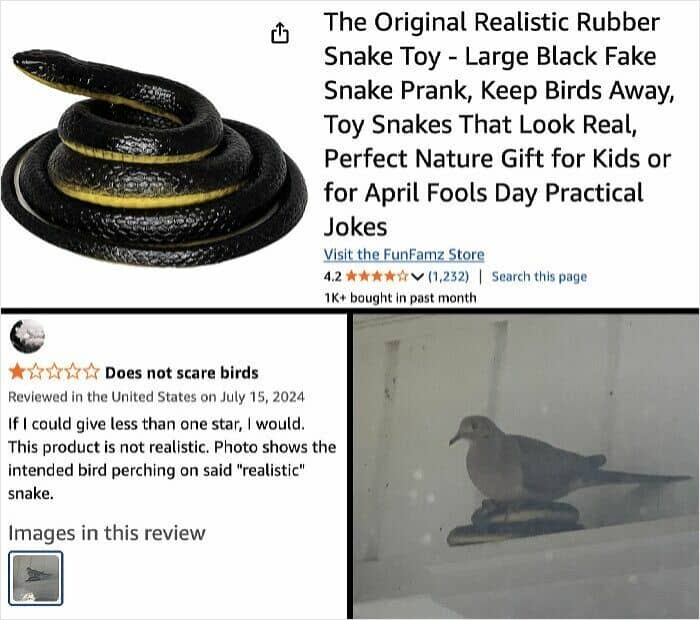 #15 Found This Comfy Little Idiot In A 1-Star Review For Rubber Snakes