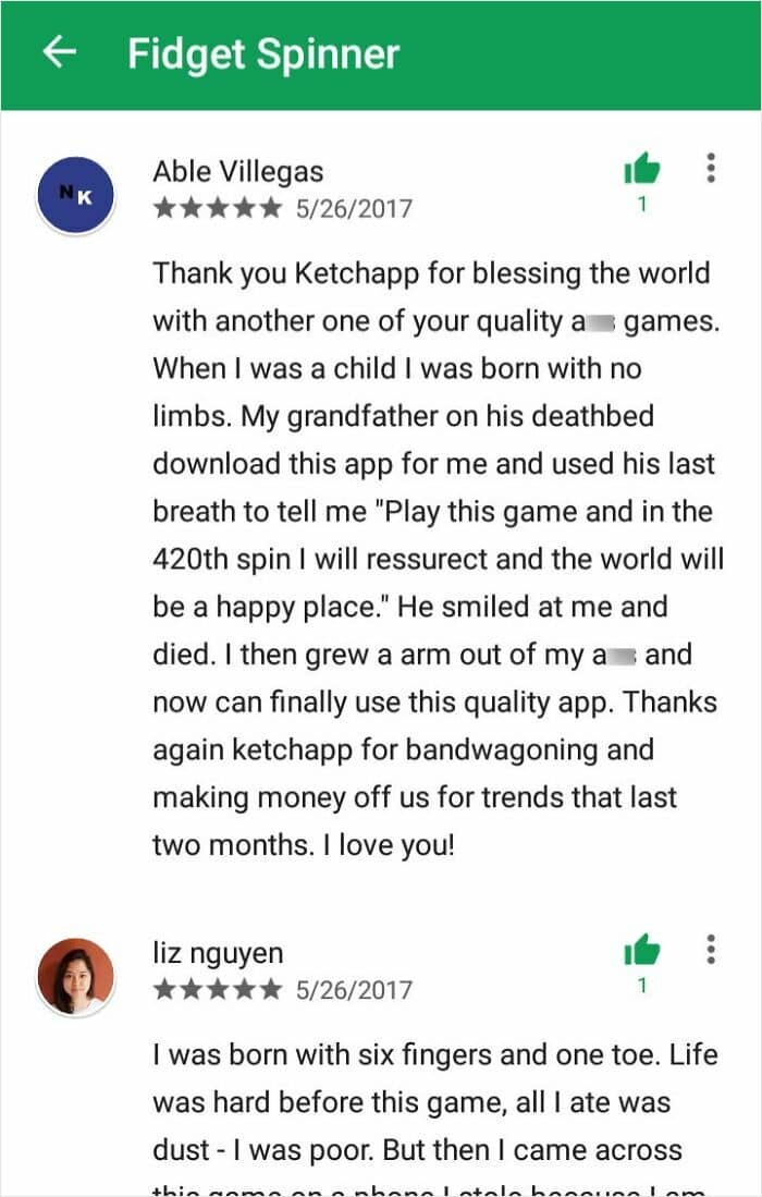 #67 The Reviews For The Fidget Spinner App On The App Store