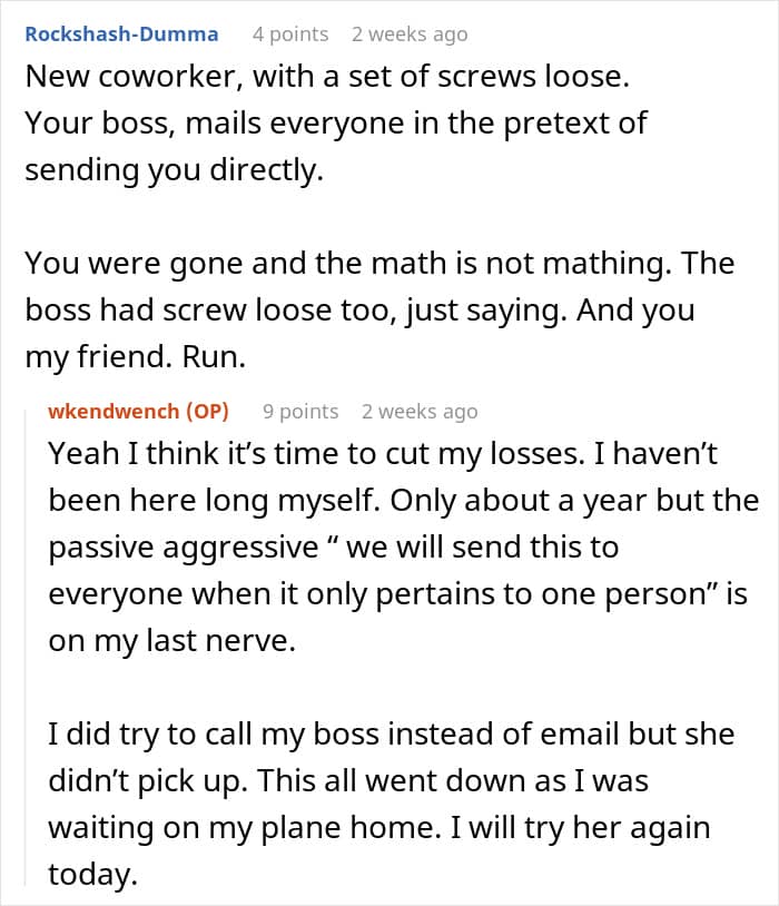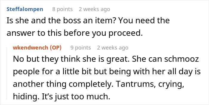 Since sharing their story, the situation has only escalated. The coworker’s latest actions include an outburst over being left out of a casual conversation, followed by an accusatory team email. Trust in the office has eroded, especially after it came to light that she had also attempted to claim part of another colleague’s commission.