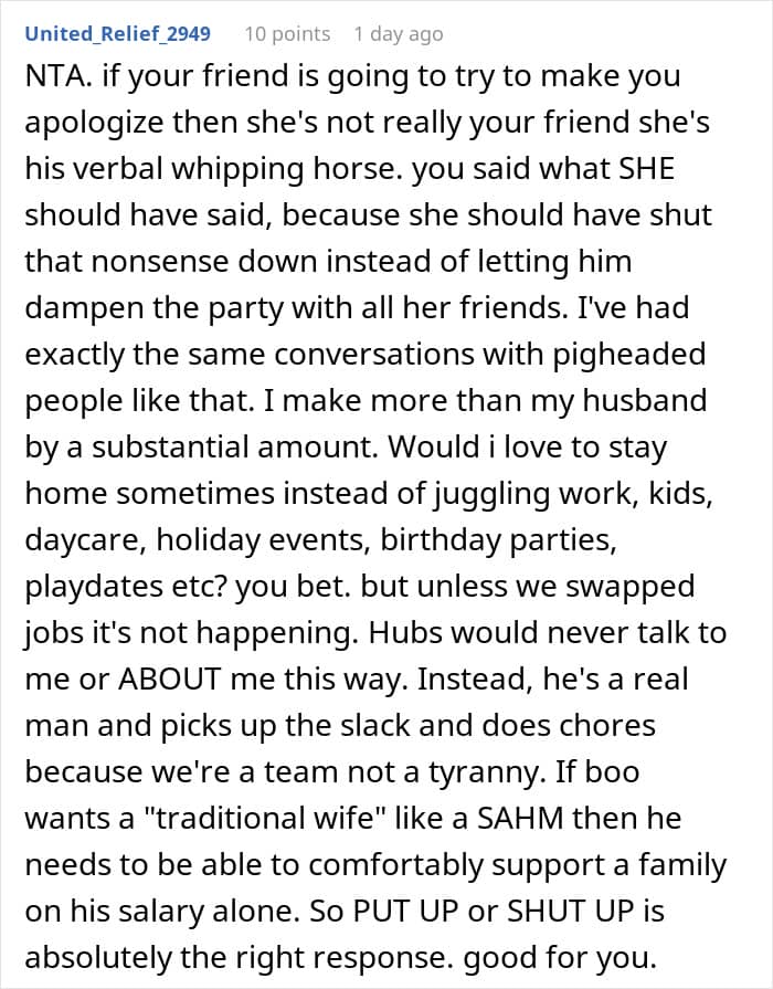 If you have a spare moment, we’d like to hear your perspectives in the comments down below, Pandas. How would you have reacted to such a toxic rant? What would you think if your friend decided to defend their partner even after they expressed such bizarre and hypocritical opinions? Realistically, what do you think it would take for a man like this to accept that he might be wrong and embrace a more egalitarian point of view? Let us know what you think.
