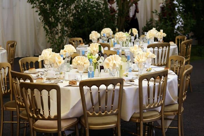 We took our baby to a wedding when she was 2 months old, and they had a place setting at the table for her — complete with a full set of metal cutlery and a highchair!