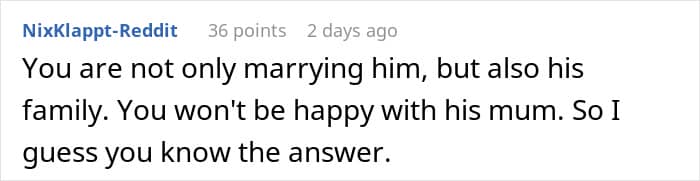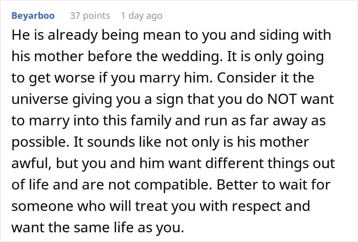 People who read the woman’s story have been saying she should call off the wedding