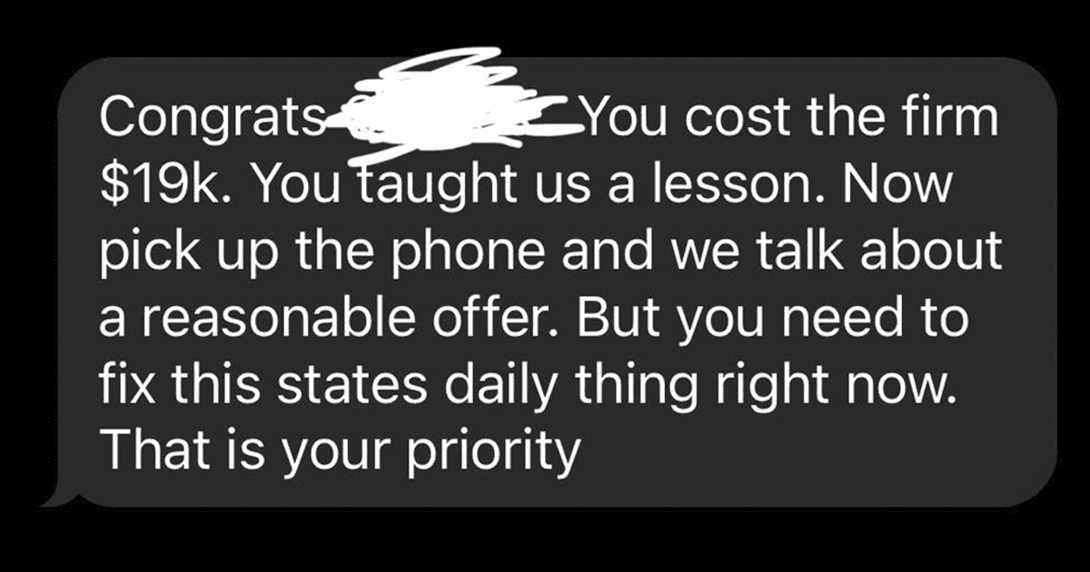 With deadlines approaching and having nothing to show their clients, their angry manager started bombarding their phone with calls and messages, trying to manipulate the employee to return “for the team.”