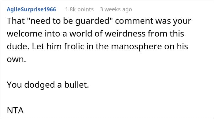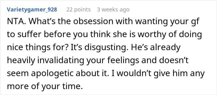 Folks felt that the poster wasn’t overreacting and urged them to dump the man