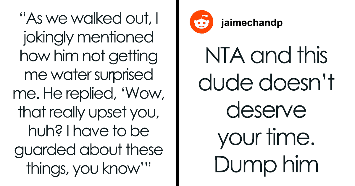 This is what happened to a person whose date refused to get them a glass of water. The guy’s reasoning was that doing so would be very submissive. This obviously didn’t go down well with the poster, who wondered whether to continue the relationship ahead.